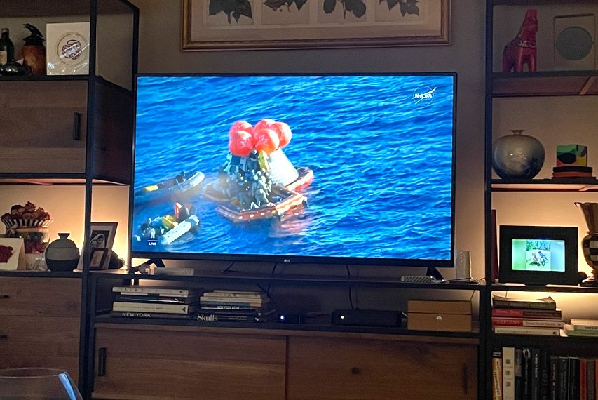 On the Friday evening of splashdown, I happened to be out to dinner at a restaurant in Manhattan. Dining alone while my wife was out of town on travel, I was able to kibbitz with my buddies through a group chat, not only sharing where the spacecraft was in its journey home, but also what I was eating at each of the mission’s final stages. I marveled at a modern world in which I could follow the action on a ubiquitous pocket-sized computer and carry on a running conversation in real time with friends geographically spread out across the United States.