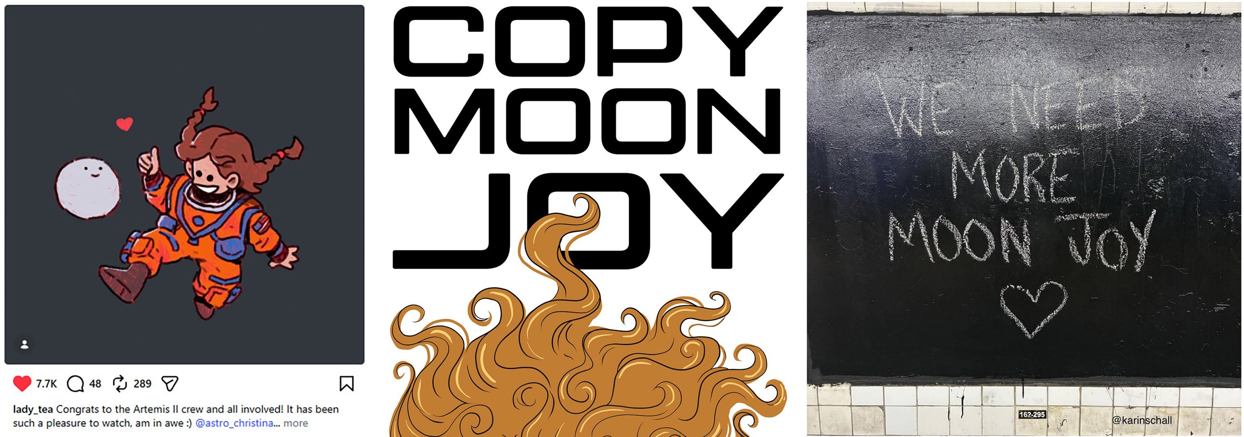 During an exchange with the crew, a ground controller said “...copy, moon joy” and the phrase immediately stuck. It seemed to capture the feeling we were all sharing: joy over sharing the experience of flying to the moon with a crew that was unapologetically enthusiastic about what they were doing, gazing out the window of their craft in wonder.