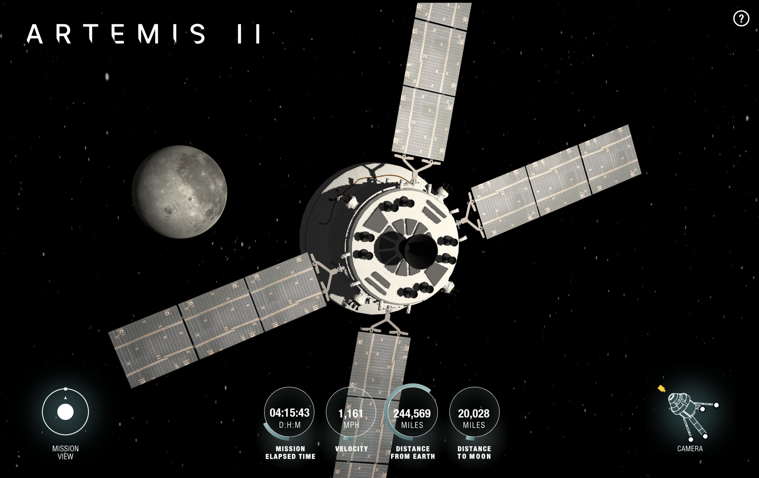 NASA’s super cool online visualizer tool that allowed anyone with a computer to see where the spacecraft was in space and how it was oriented to the moon and the earth.