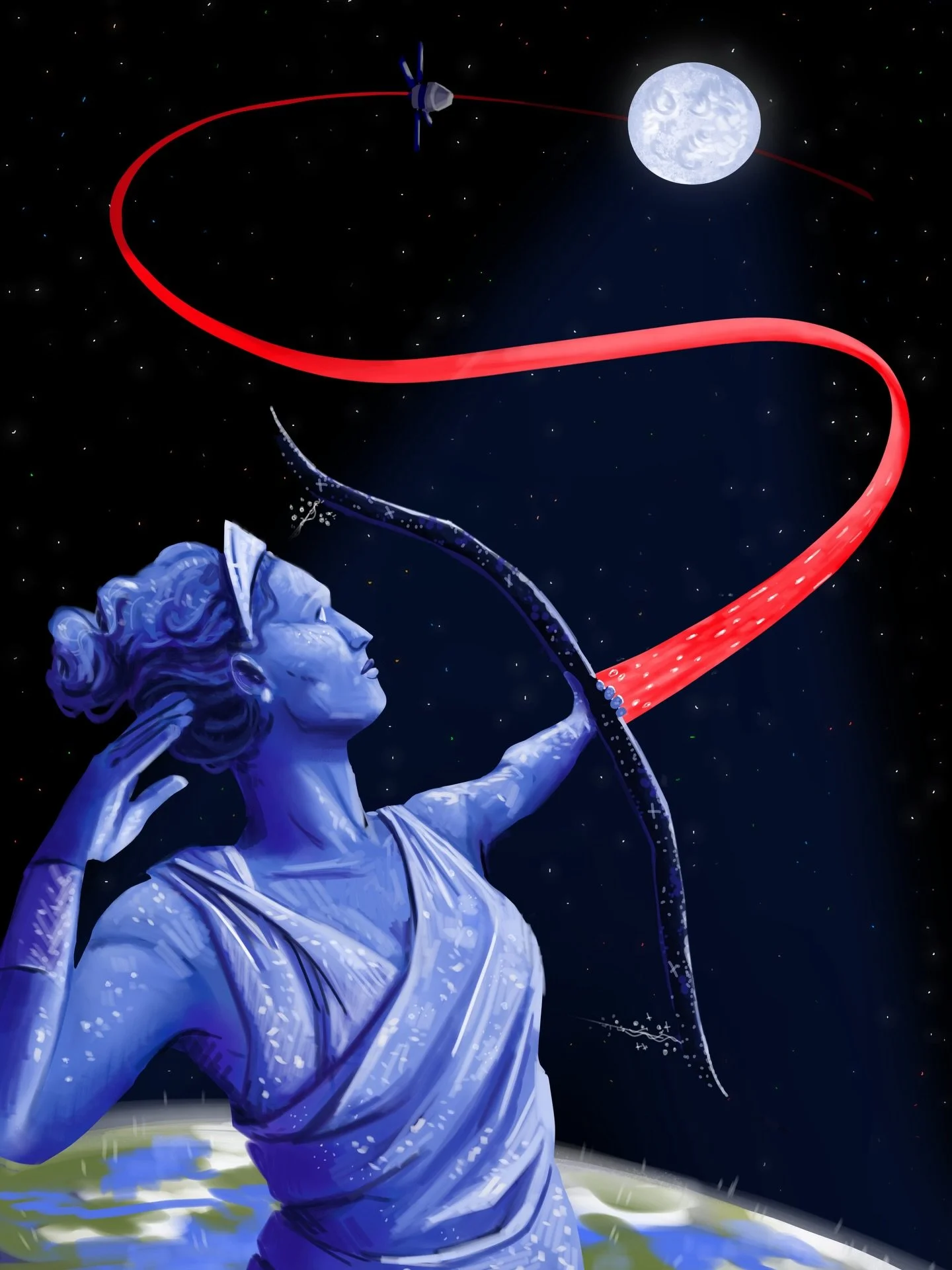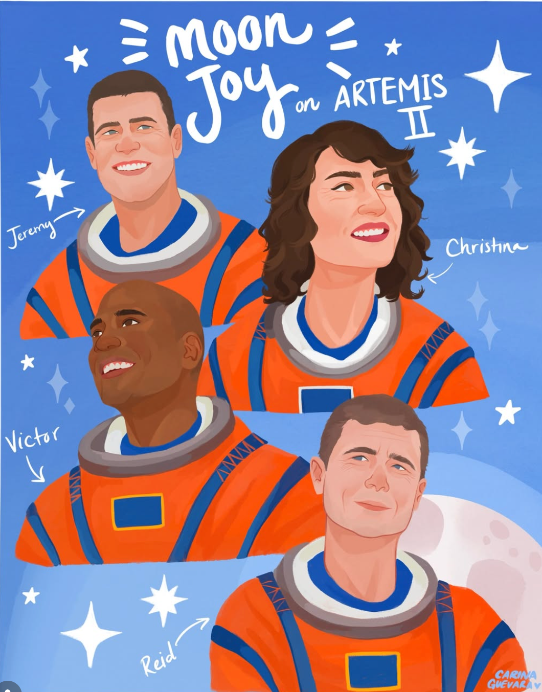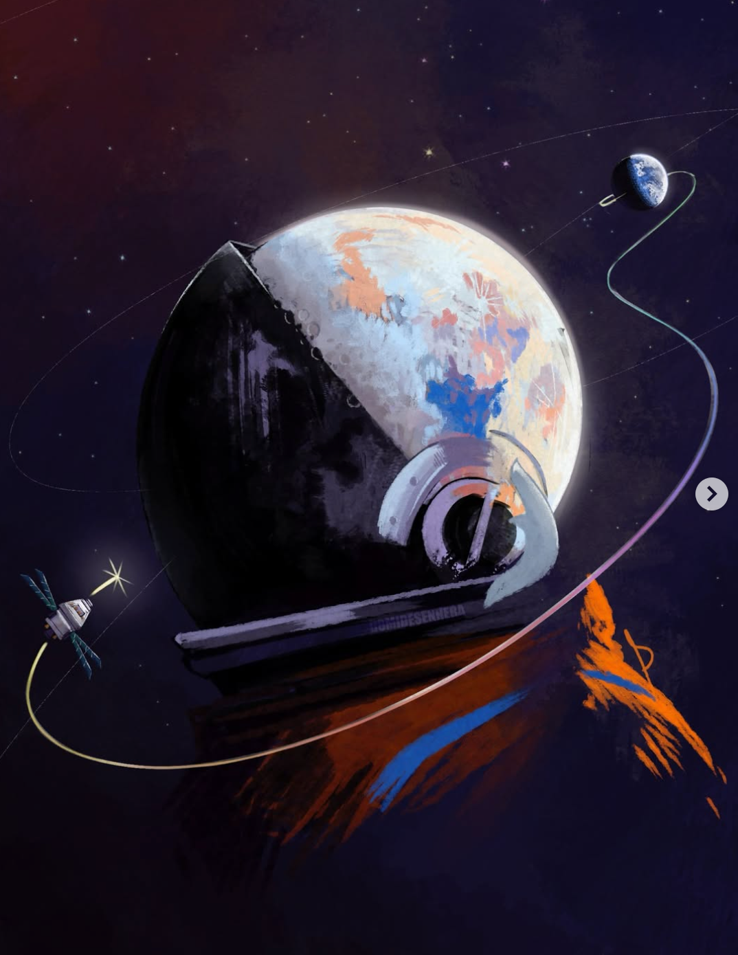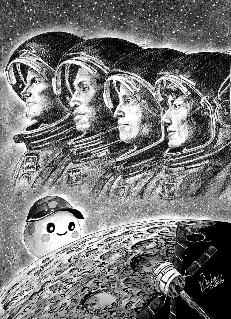 The recent Artemis II mission to the moon generated intense interest worldwide. And artists responded as the always do: by producing visually stunning and emotionally powerful work. I saw so much great art online that I wanted to gather some of my favorite pieces (before they disappeared into the unimaginably large digital ocean) so that others could see this wonderful art presented thematically. I made every effort to credit the artist where I could.